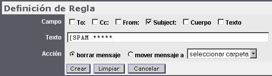 SPAM necesario configurar reglas de filtrado como